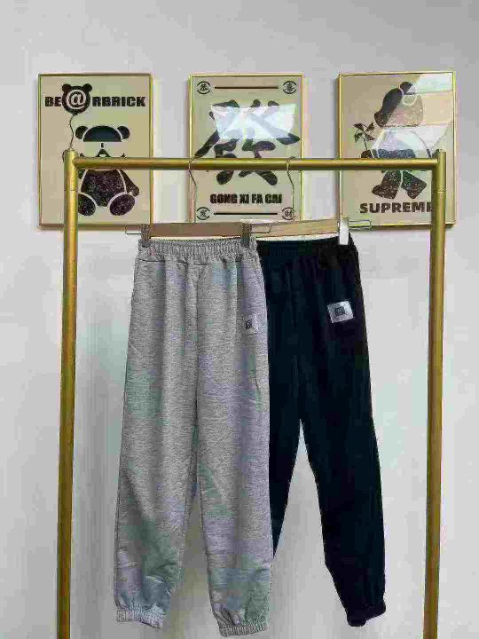 天猫在售款600件左右高品质中大童潮牌春秋款棉质束脚卫裤,单款两色,码数120-170,独立包装带吊牌
