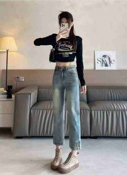 高腰复古开叉弹力九分牛仔长裤 133件,全清11.8元,不分货,正品独立包装,...