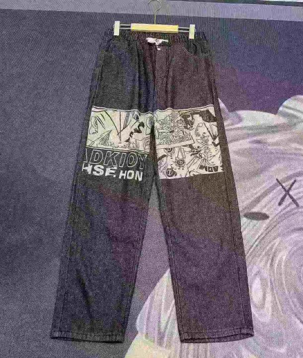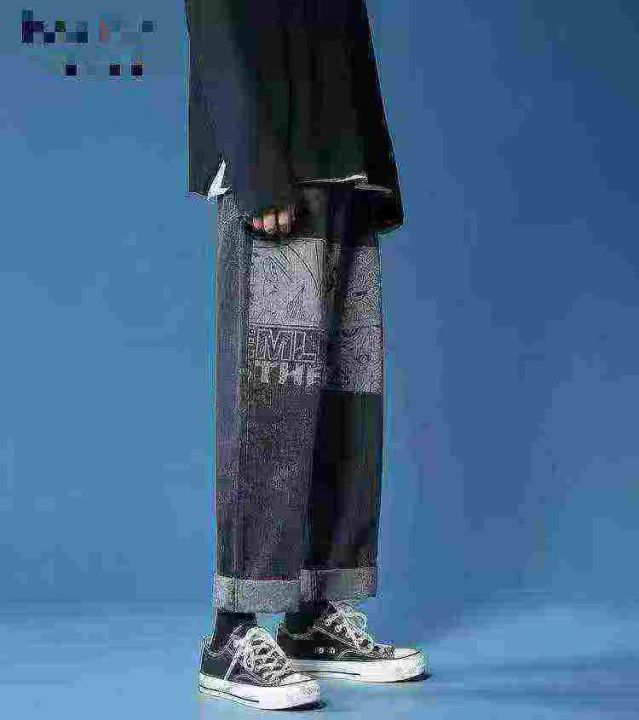 天猫在售款450件左右高品质男装潮牌个性涂鸦加绒加厚松紧腰阔腿牛仔裤,内里加黄金绒,单款单色,S-3XL,独立包装带吊牌