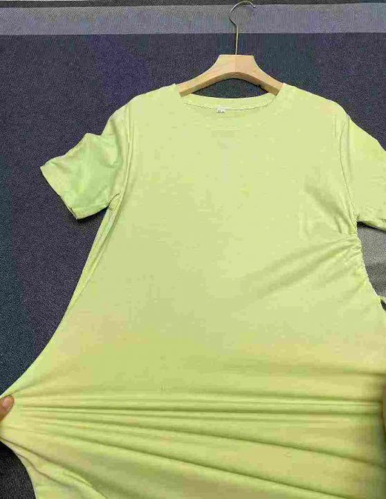 天猫在售款300件左右高品质夏季纯棉中长款靓妹抽绳收腰短袖T恤连衣裙,单款三色,有弹力,码数M-3XL,独立包装