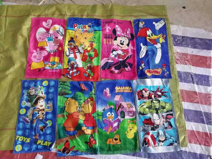 处理纯棉活性割绒印花童巾尾货28-50规格48克花型多量大,一块多钱