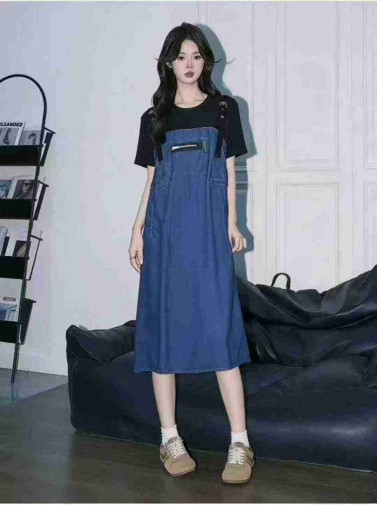 [月亮]:仿牛仔休闲假两件宽松大码连衣裙
