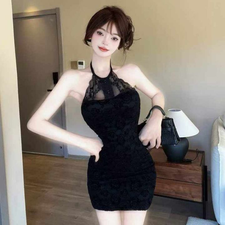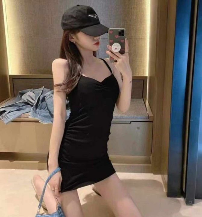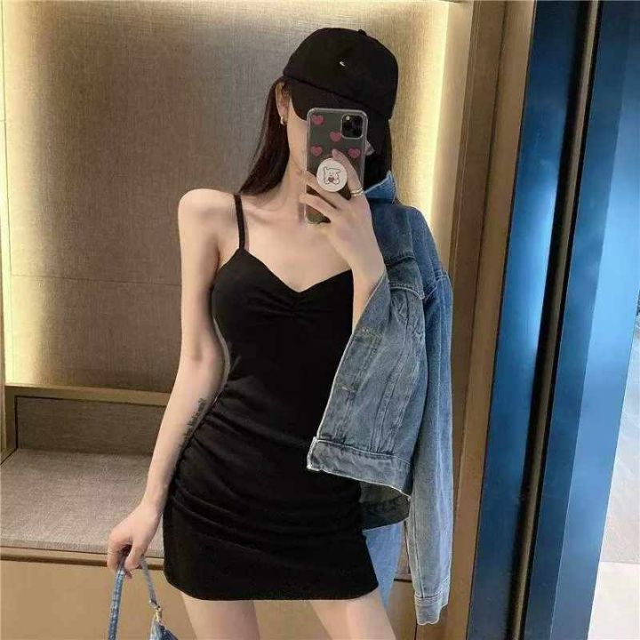夏季辣妹性感纯欲包臀黑色吊带连衣裙,工厂新货无包装...