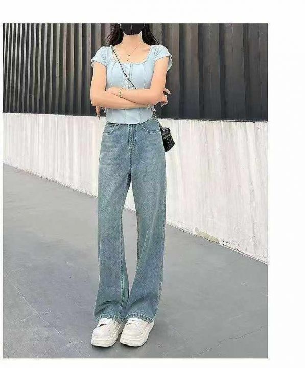 网红款简约复古刺绣直筒牛仔裤女高腰宽松显瘦拖地阔腿裤,单款单色,独立包装带吊牌,高弹力高品质,码数s-2Xl,数量1097件,全清福利价19.9元!分货+1!