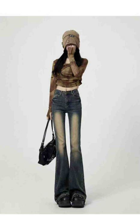 ins辣妹复古微喇叭牛仔裤女春秋爆款美式马蹄拖地裤,...