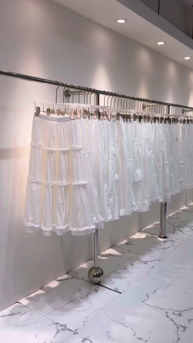 19.9木耳边白色半身裙[庆祝][庆祝]春夏新款温柔中长款A字仙女蛋糕裙长裙来...