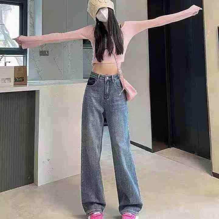 夏季薄款弹力直筒阔腿牛仔裤,独立包装带吊牌,单款单...