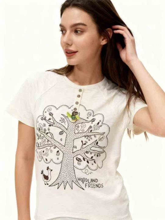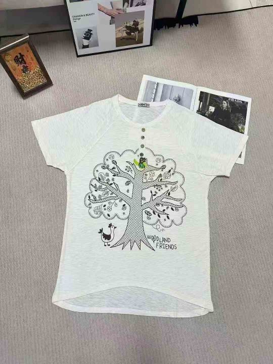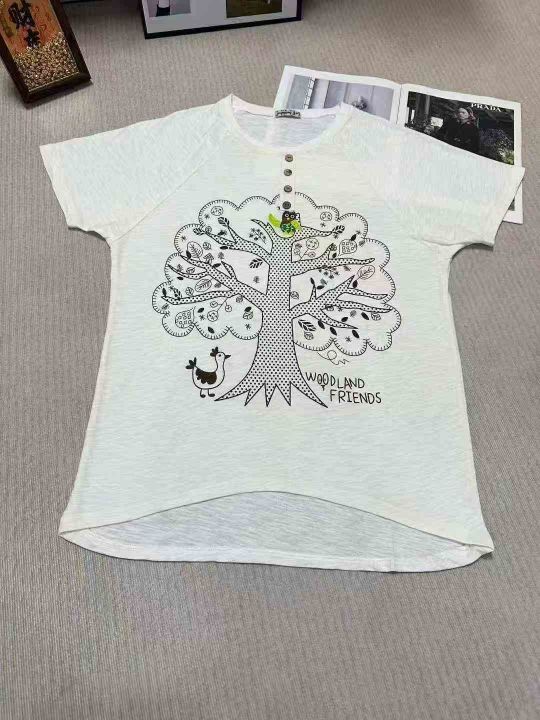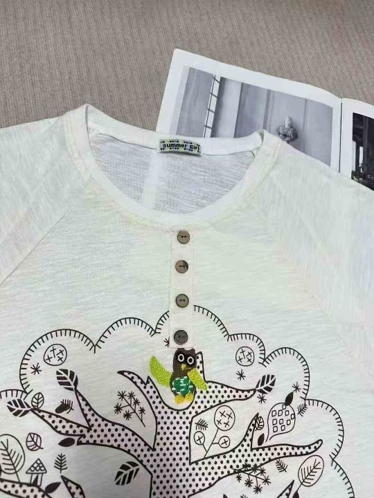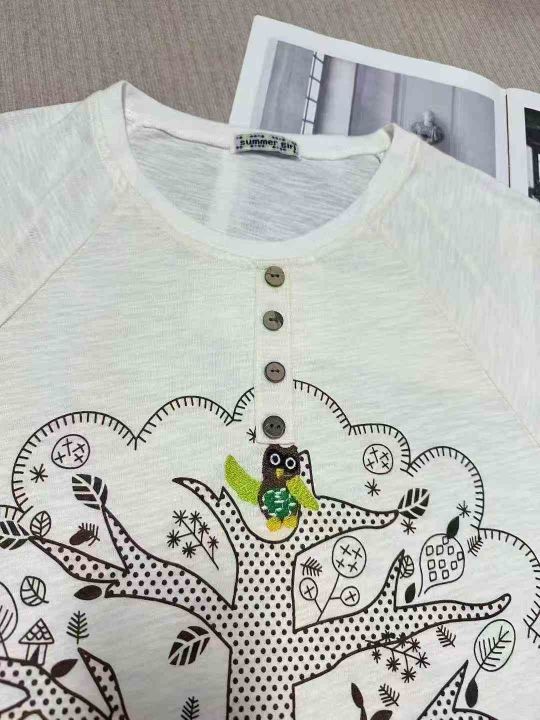 日韩单森系棉麻刺绣印花T恤,¥4.8清