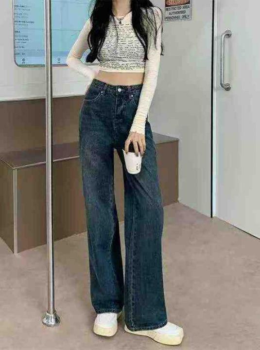YKK拉链韩版高腰复古蓝牛仔裤女,单款两色,原包装原...