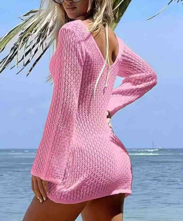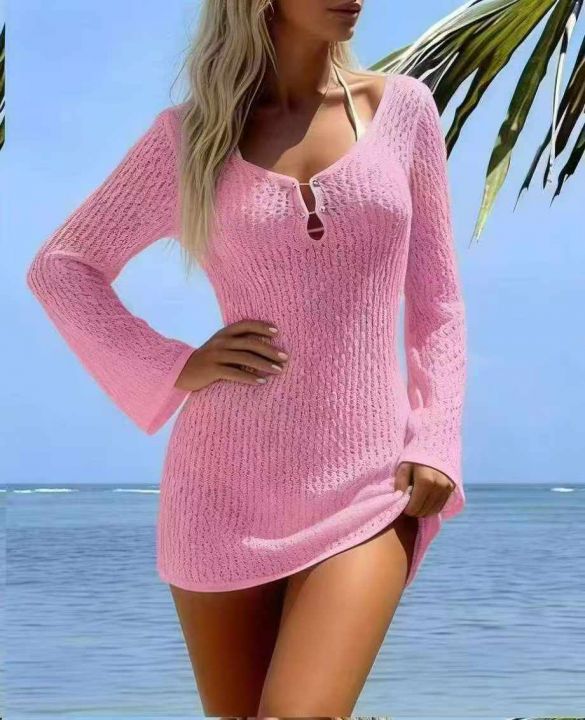 夏季新款欧美原单沙滩包臂性感针织镂空长袖爆款罩衫防晒连衣裙,独立包装,均码面料柔软舒适有弹力,1025件,全清5.9元超低价秒杀!分货加一!