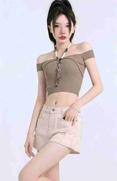 夏季新款高弹力网红破洞设计款洗水棉牛仔短裤,独立包...