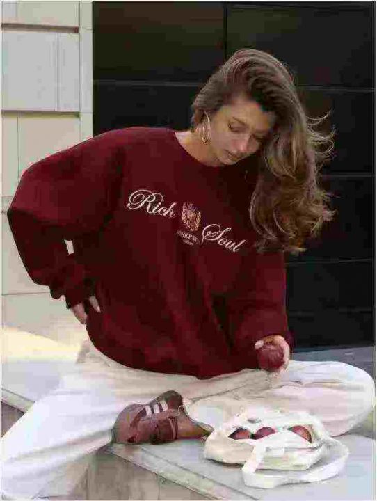 欧美风卫衣女秋冬婴儿绒加厚款宽松百搭套头(后领包边...