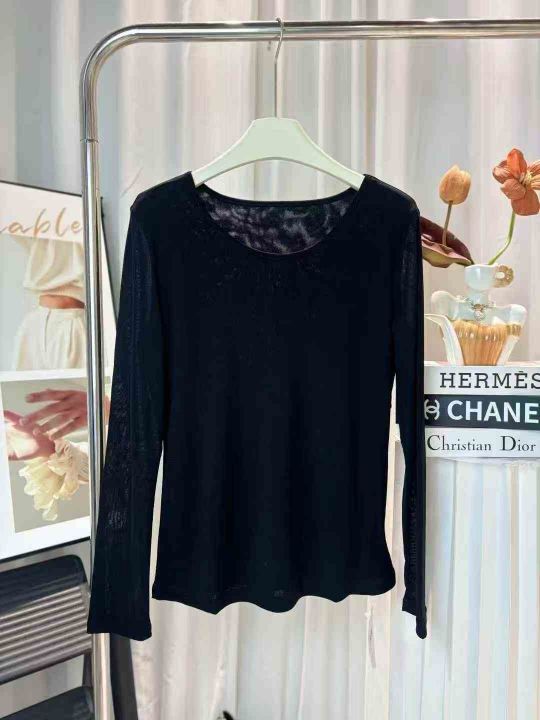 83件韩版纯欲风大圆领长袖t恤女透气修身内外搭打底衫...
