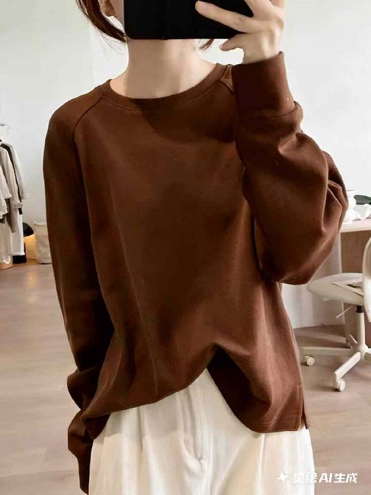 春季新款净版简约宽松大版下摆开叉设计款纯棉毛圈卫衣...