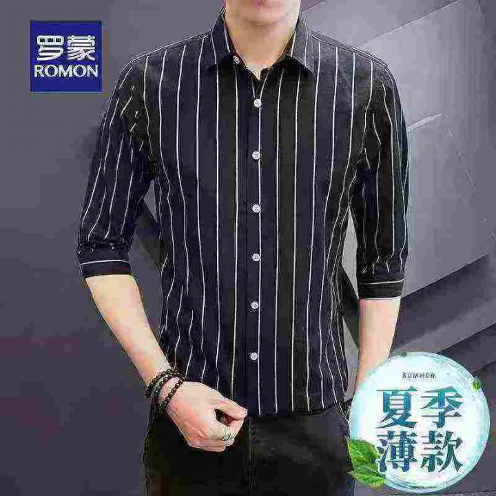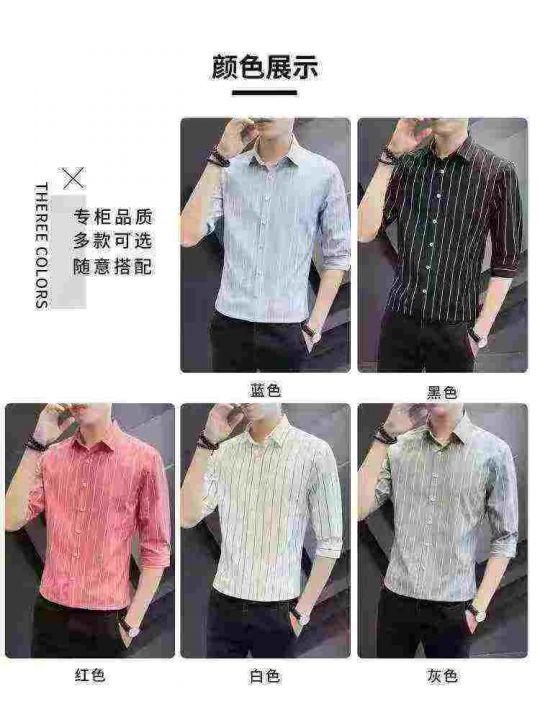高端男士休闲中袖衬衫夏季冰丝雪纺韩版潮流修身大条纹衬衣,整款多色,独立包装,货品干净,M-5XL码,1850件左右,7.5清,分货加1