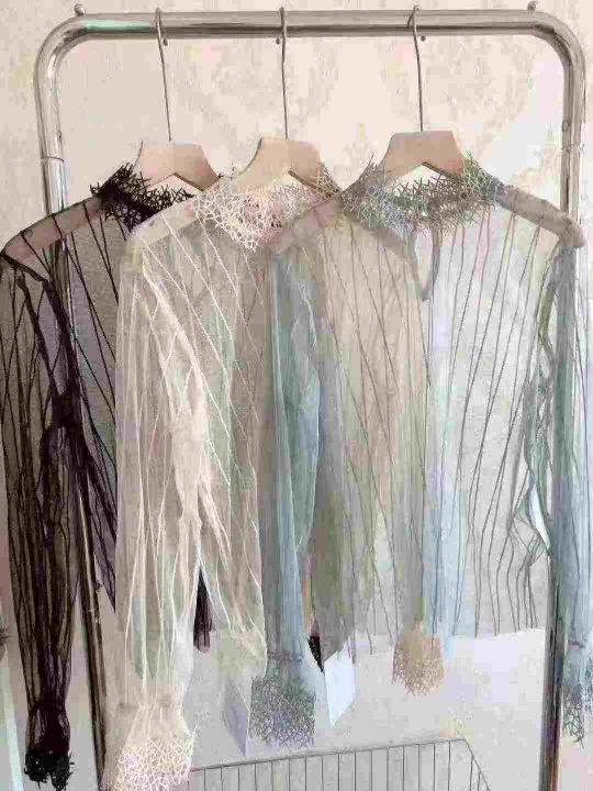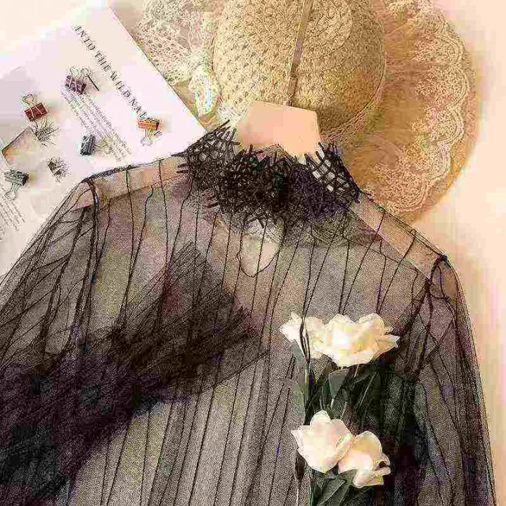 130件韩系甜美半高领蕾丝网纱打底衫百搭长袖上衣毛衣...