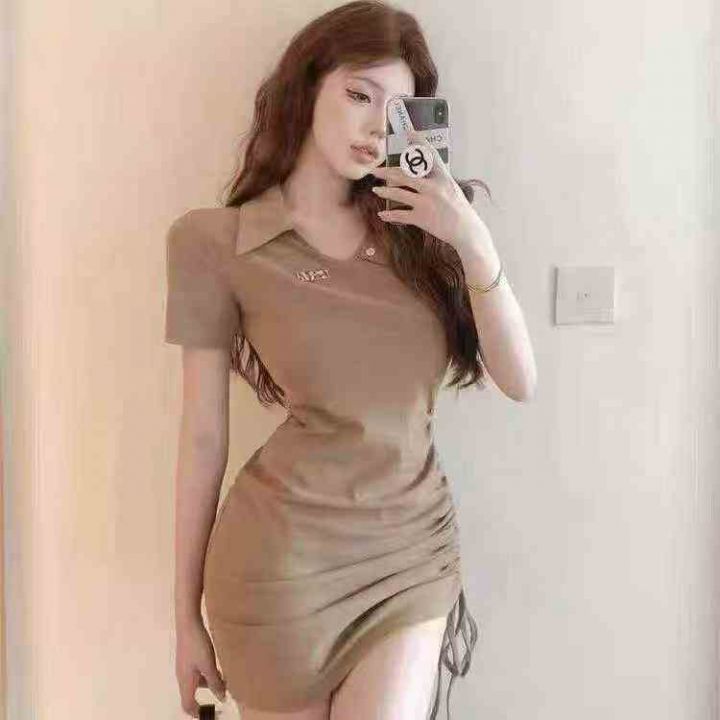 ① 辣妹polo领短袖抽绳纯欲气质包臀连衣裙!独立包装...