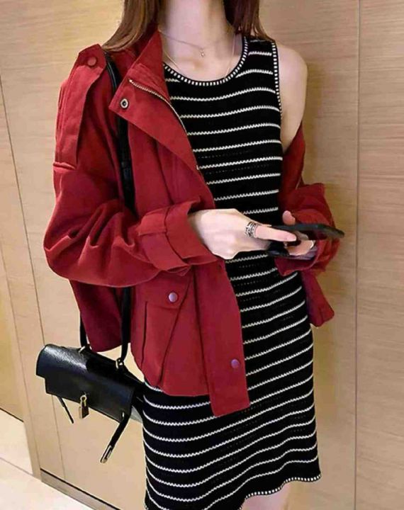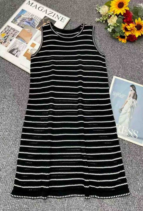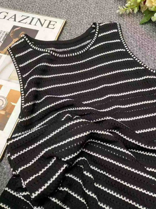 春夏季新款韩系撞色镂空条纹无袖针织背心连衣裙,独立...