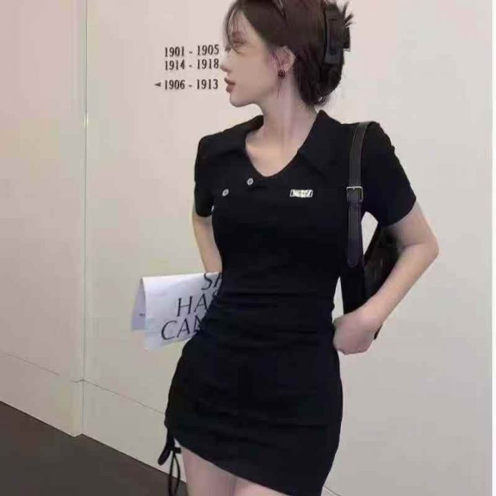 ① 辣妹polo领短袖抽绳纯欲气质包臀连衣裙!独立包装...