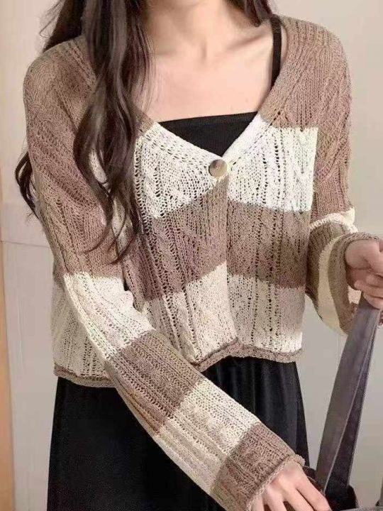 春秋新款时尚洋气V领显瘦一粒扣麻花针织开衫,独立包...