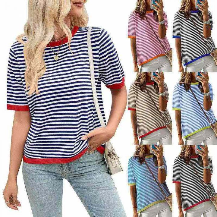 夏季新款品牌原单宽松百搭拼接撞色圆领针织短袖T桖,独立包装带吊牌,图片...