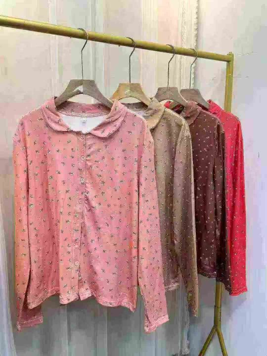 时尚早春季洋气百搭翻领小碎花长袖女士上衣T恤外穿衬衫,数量3600件,码数s-2xl,独立包装,全清4.8元