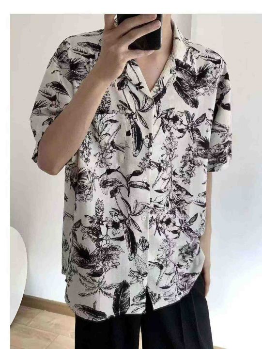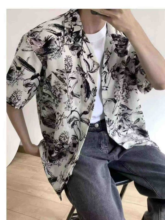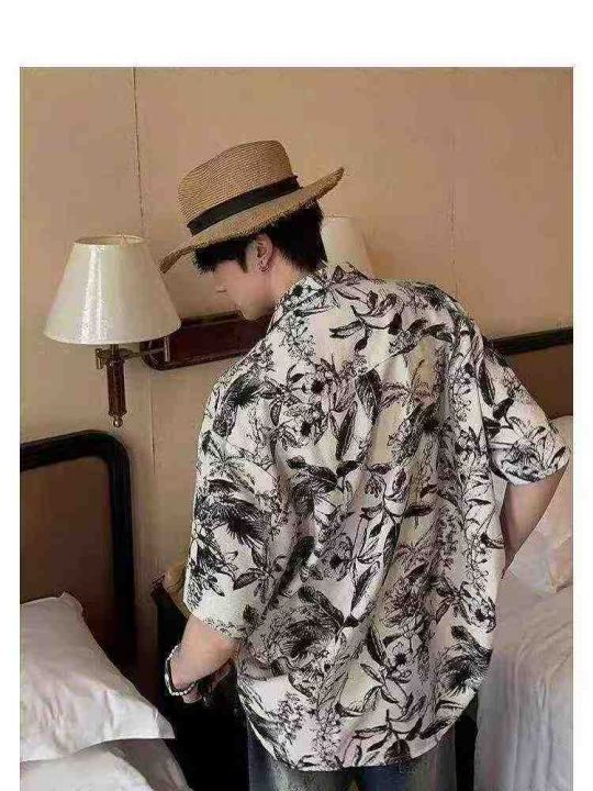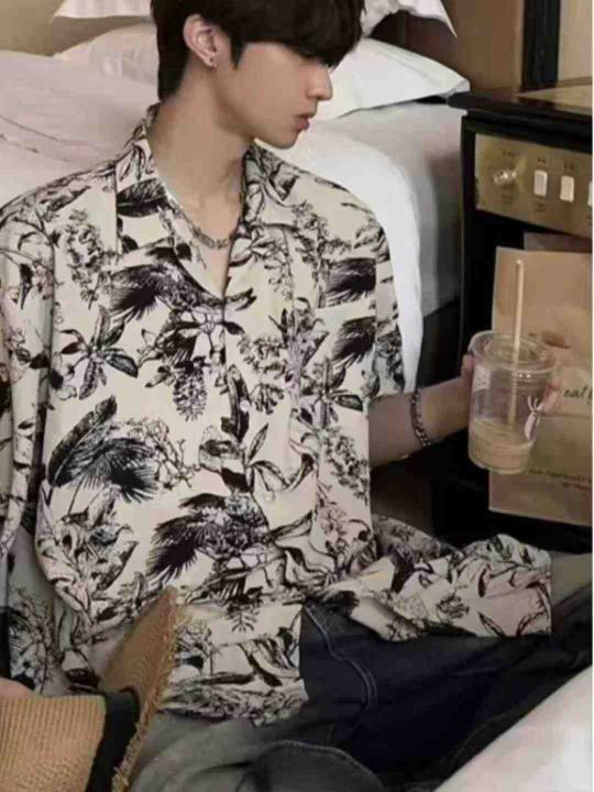 夏季新款男士度假风古巴领半袖休闲冰丝衬衣开衫,独立...