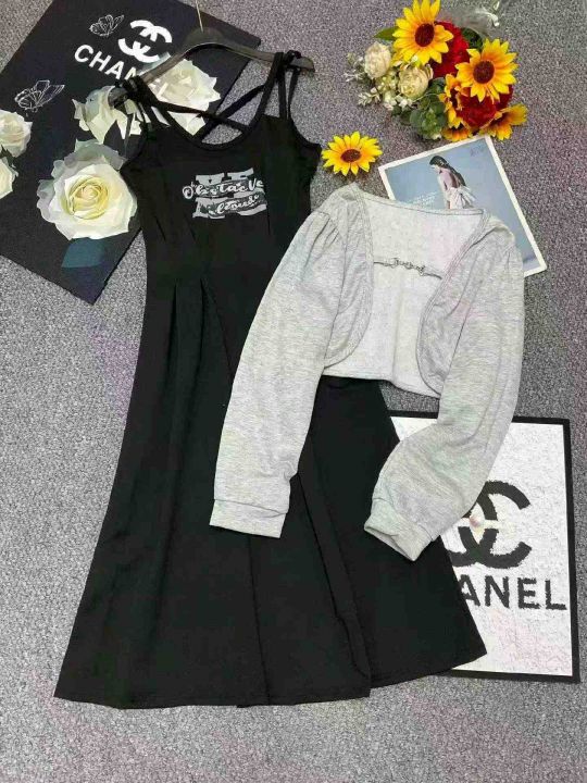 春季新款网红爆款御姐风纯欲百搭吊带连衣裙+气质高级感开衫棉外套2件套,独立包装,码数S-XL码, 263件左右,全清12.8元超低价秒杀!分货加一!