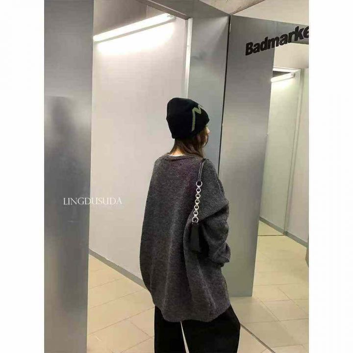 春秋新款宽松百搭v领纯色慵懒风毛衣开衫外套,独立包...