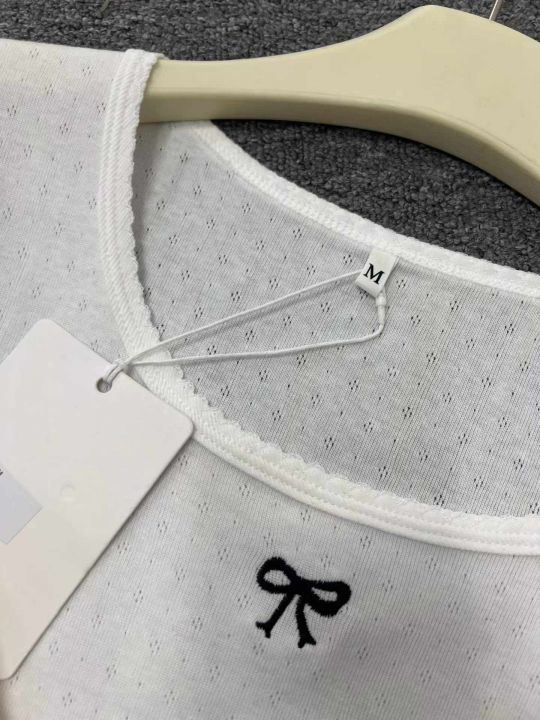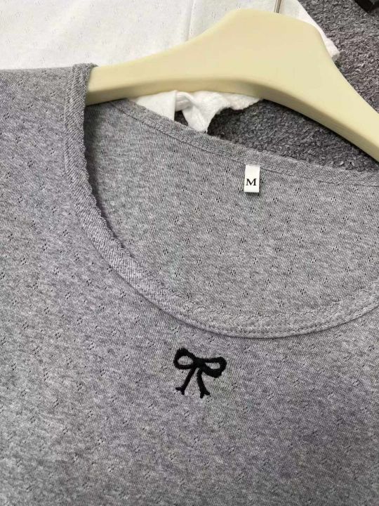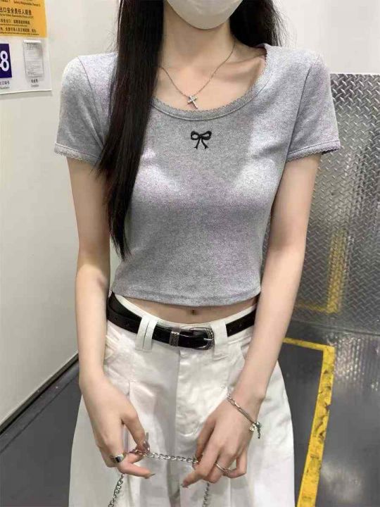 ☕️辣妹短袖T恤韩版百搭甜美提花蝴蝶结短款上衣580件...