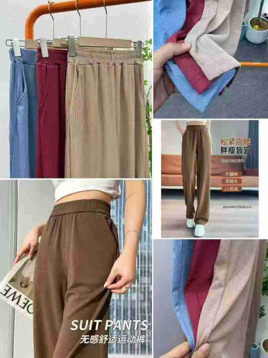 捡漏夏秋季热卖女士休闲冰丝阔腿直筒显瘦垂感长裤,独立包装,图片四整款,图一款多,数据250条,码数1-7(S-2XL),货号1019#44