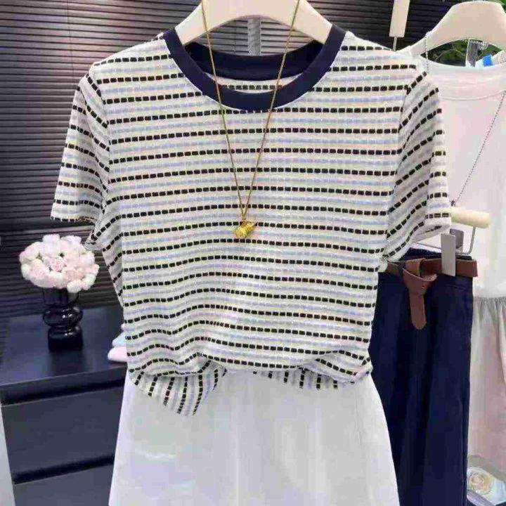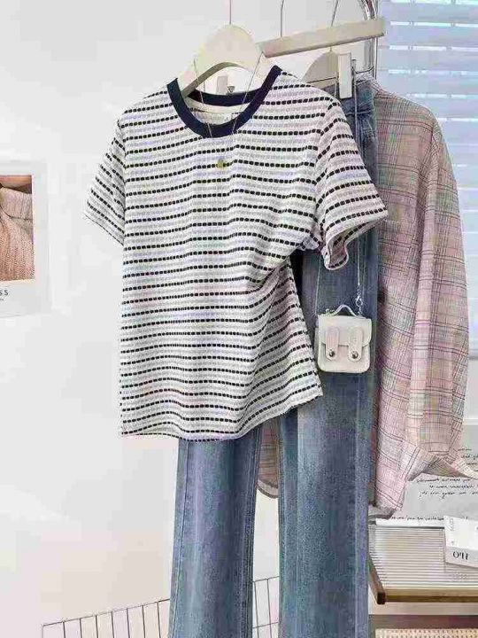 ☕️网络爆款大整款纯棉短袖T恤3000件全清8.8元,分货9.8元,码数M到XXL,正品独立包装,单款单色,时尚百搭减龄别致小众高级感上衣女夏季今年流行纯棉条纹正肩短袖T恤