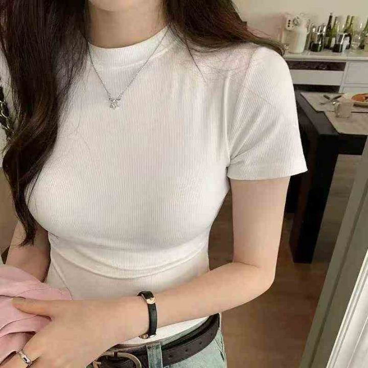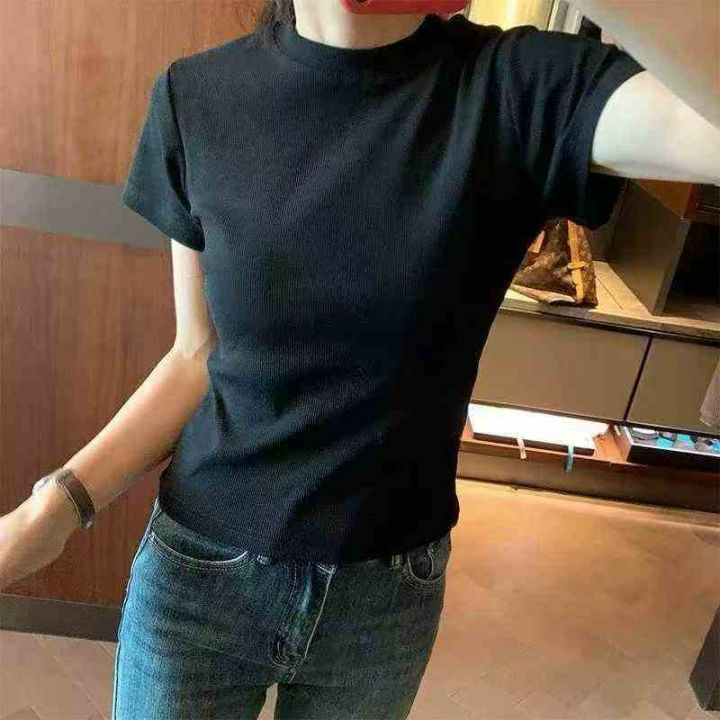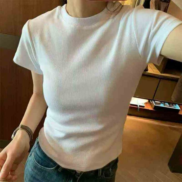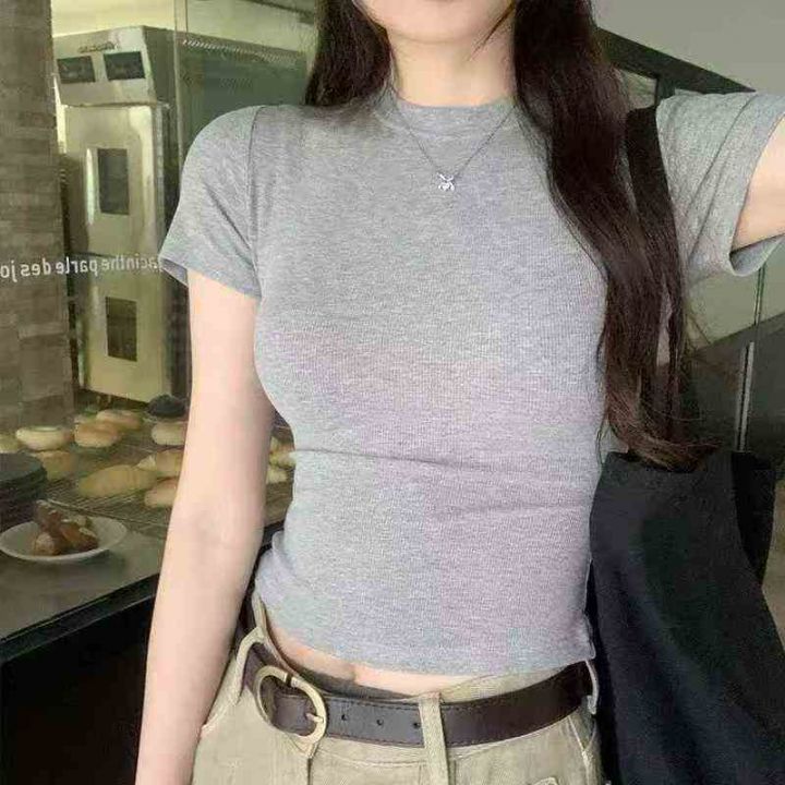 辣妹修身显瘦纯色短袖T桖101件,全清6.8元,正品独立包装,货品干净,码数:M到XL,紧身圆领短袖正肩T恤女2025夏季辣妹露腰修身小个子短款上衣