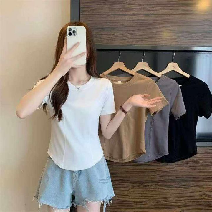 ❄️夏季辣妹露脐短款辣妹纯棉短袖T恤,高弹力,品质好,独立包装带吊牌,...