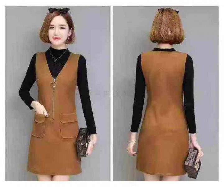 590条单件春装新款宽松显瘦无袖连衣裙女时尚气质v领毛呢背心裙中长款 独立...