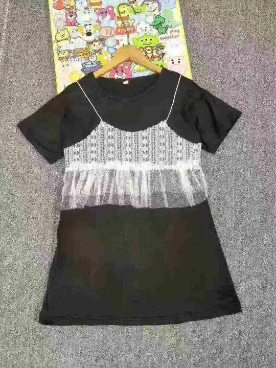 150件女中大童中长款连衣裙夏装洋气女孩韩版短袖蕾丝假两件吊带T恤裙子 单款两色,码数2-7(120-170)独立包装。