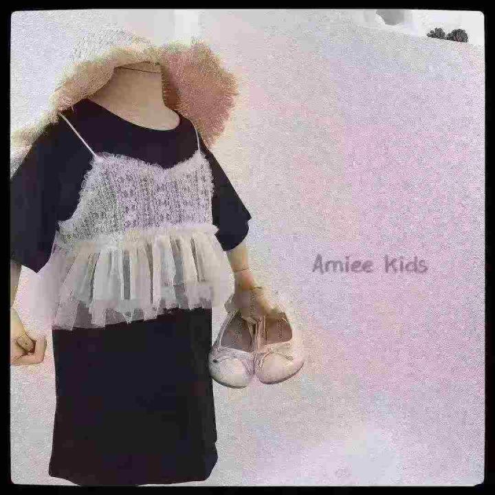 150件女中大童中长款连衣裙夏装洋气女孩韩版短袖蕾丝假两件吊带T恤裙子 单款两色,码数2-7(120-170)独立包装。