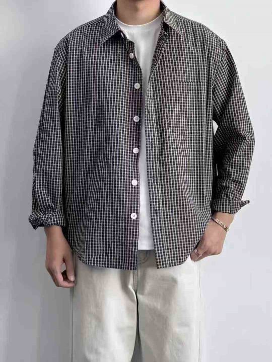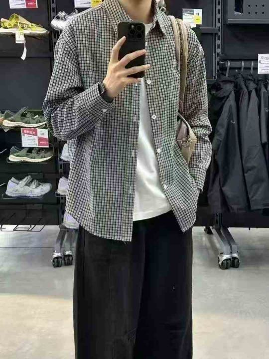 2026春秋季新款长袖衬衫男女时尚潮流百搭撞色格子衬衫...