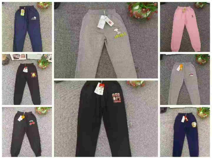 中大童纯棉束脚长裤,数量850件左右,尺码110--160,logo很多,独立包装带吊牌,货品干净整洁