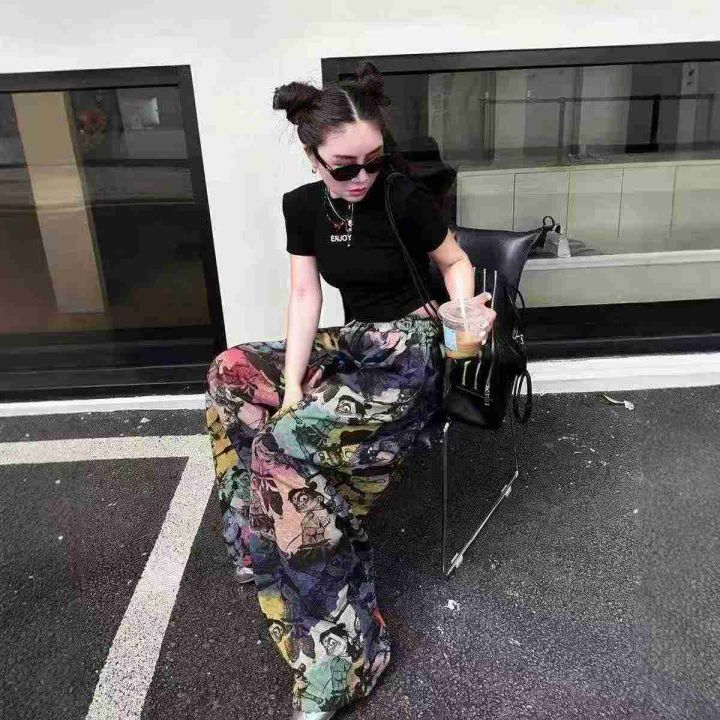 扎染哪吒图印阔腿裤975件6.5,