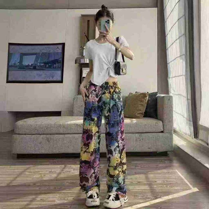 扎染哪吒图印阔腿裤975件6.5,面料舒适高弹力,松紧腰...
