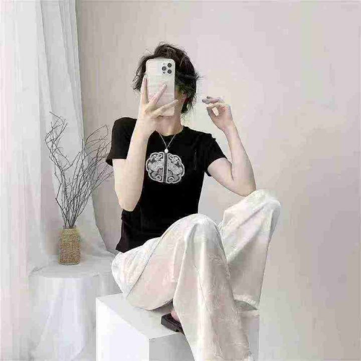辣妹小众设计国风刺绣纯棉短袖T恤·单款两个色3个码独...