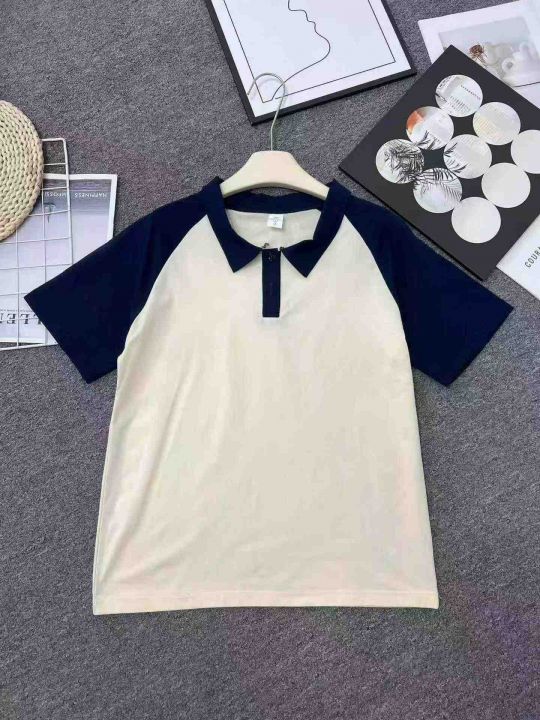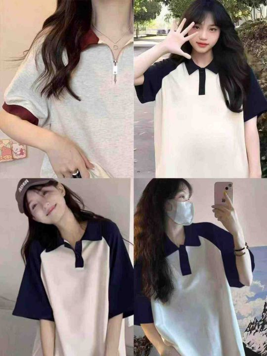☕️男女同款polo领减龄撞色正肩短袖t恤夏季宽松百搭...