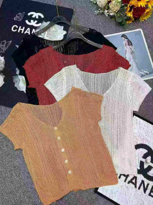夏季新款法式纯色v领宽松镂空设计感单排扣洋气冰丝短袖时尚减龄针织开衫,独立包装,均码面料柔软舒适,单款多色,91件,全清5.9元超低价秒杀!