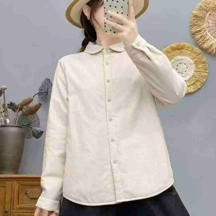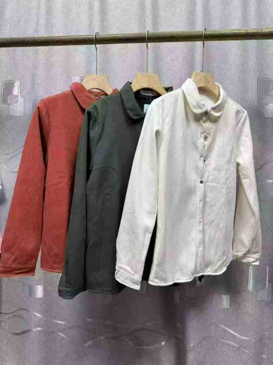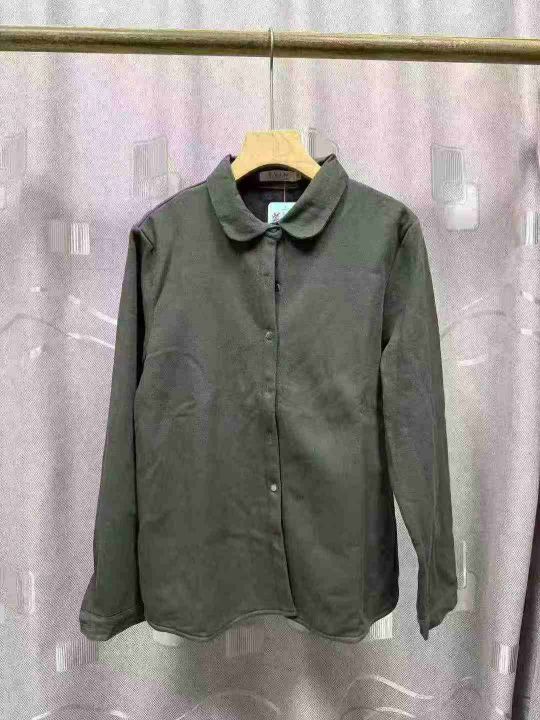 日系简约舒适加厚婴儿绒质感通勤减龄元宝领子母扣保暖长袖衬衫,面布纯棉质量好,独立包装,S - 2 x L码,380件左右,全清7.8块