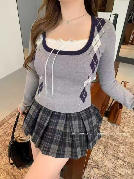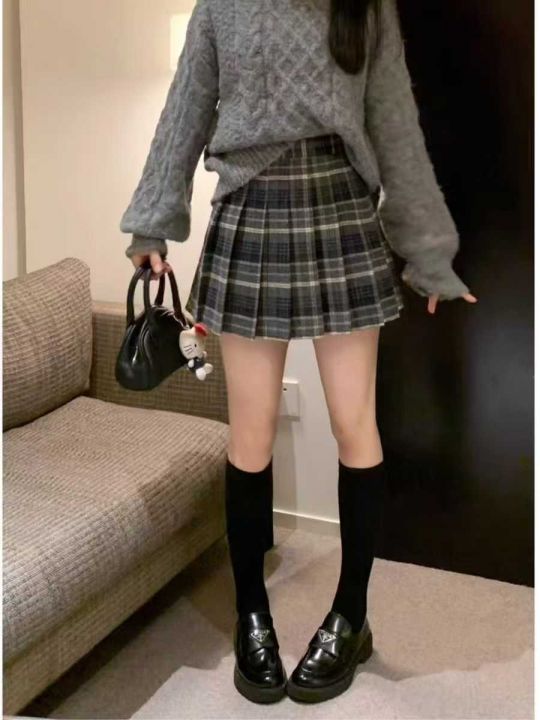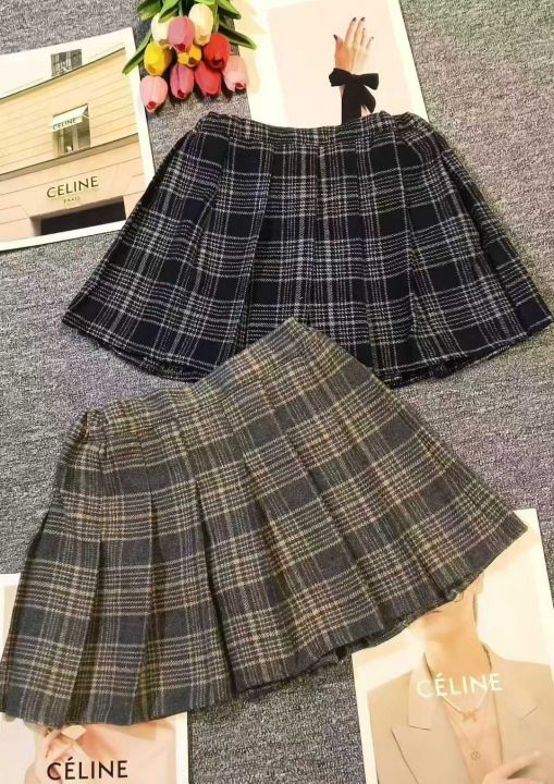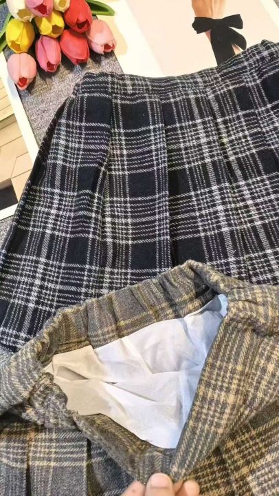 复古撞色设计感格纹毛呢百褶裙,数量79件,...