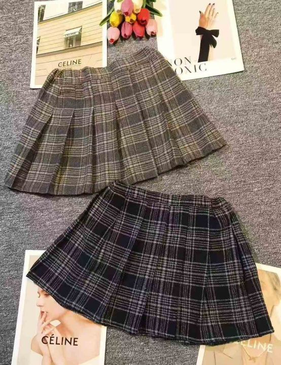 复古撞色设计感格纹毛呢百褶裙,数量79件,...