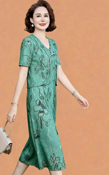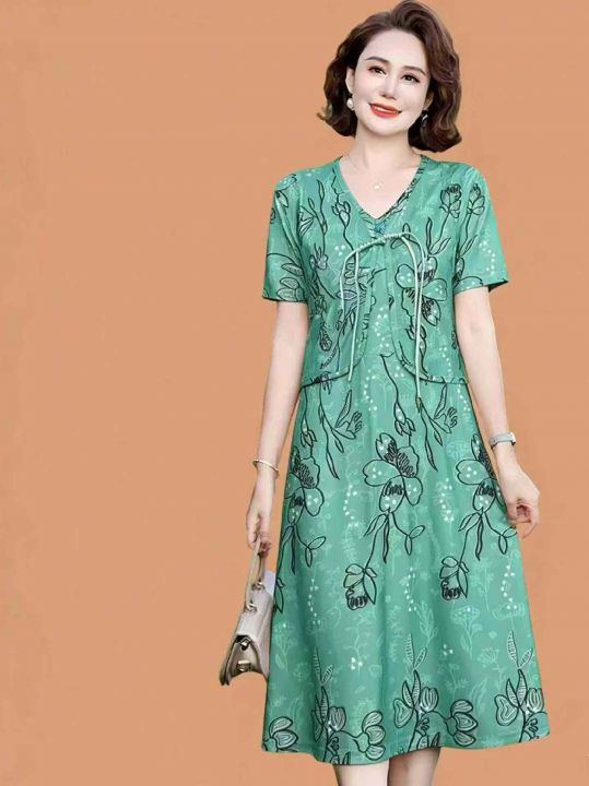 夏季新款网红流行爆款高端洋气妈妈假两件套旗袍连衣裙...