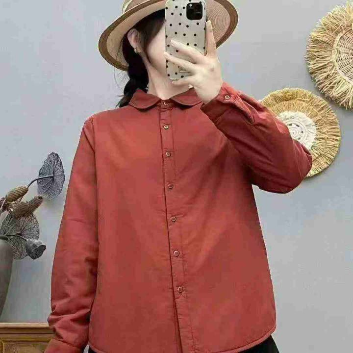 日系简约舒适加厚婴儿绒质感通勤减龄元宝领子母扣保暖长袖衬衫,面布纯棉质量好,独立包装,S - 2 x L码,380件左右,全清7.8块