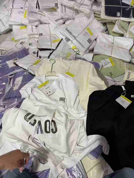 广州站西高街男女极简潮牌 :240克双纱冰磁棉。全部一家公司品牌单 码数l-5+:可以100-200斤 全部齐码齐色。郑重承诺(客户收到不满意品质问题件退货